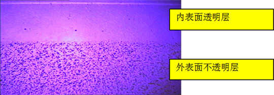 我們生產(chǎn)的石英坩堝一般是由兩層結(jié)構(gòu),其中內(nèi)層為幾乎不含氣泡的透明層,外層是含有大量氣泡的不透明層。內(nèi)層透明層直接與高溫硅液接觸,它的質(zhì)量對硅單晶拉制過程和質(zhì)量影響甚大。外層不透明層主要是散射來自高溫石墨加熱器的輻射熱量,為單晶硅制作提供相對穩(wěn)定的熱場環(huán)境
